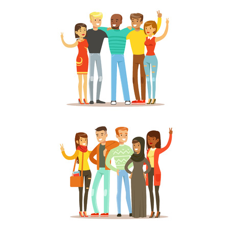 ポーズ写真 幸せな国際交流の世界的地位の各地から若い友人ベクトル漫画イラストのイラスト素材 ベクタ Image