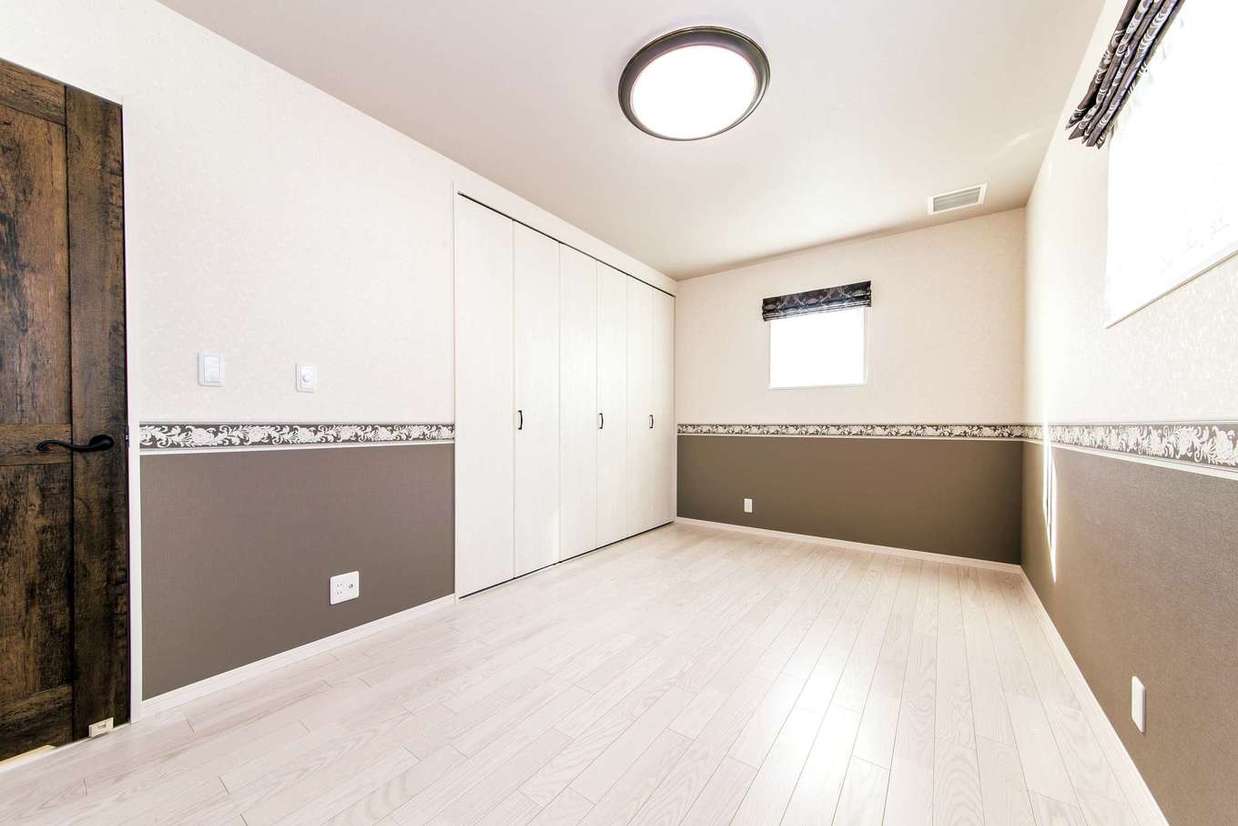寝室もエアコンがなくすっきり 壁紙を上下で貼り分けておしゃれな雰囲気を演出 イエタテ
